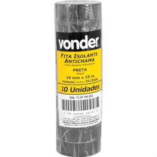 Kit 10 Fitas Isolante Antichama 19mm 10m Vonder 750v Cor Preto Liso em Oferta na Shopee Shopee
