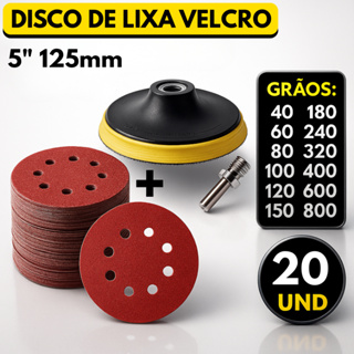 Kit Base Suporte 125mm com Adaptador M14 + 20 Lixas 8 Furos Com Velcro 5" Furadeira Esmerilhadeira Lixadeira Roto Orbita em Oferta na Shopee Shopee