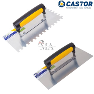 Desempenadeira Aço Lisa e Dentada Castor 10 x 24cm para Argamassa, Massa Corrida, Mármore em Oferta na Shopee Shopee