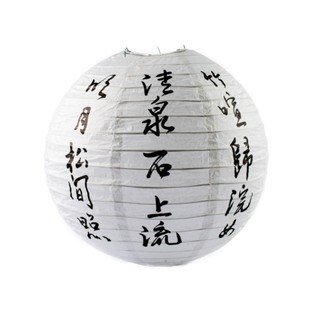 Luminária Oriental Branca Ideogramas Kanji - 30cm