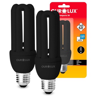 Kit 2 Lampadas Luz Negra Compacta 3U 20W 127V Ourolux