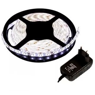 Fita Led 5050 5 Metros Com Silicone Ip65 Branco Frio + Fonte