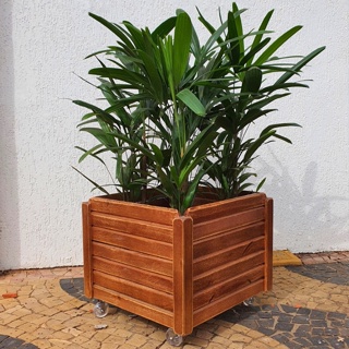 Vaso Quadrado de Madeira com Roda 33x36cm - Alpe & Aritana