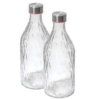 Kit 2 Garrafa Vidro 1L Transparente Agua Suco Tampa Inox Rosqueavel Hermética Vintage