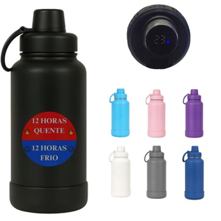 Garrafa De Água Térmica Academia Inox Temperatura Digital Led Com Alça 1000ml