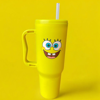 Copo com Canudo Bob Esponja 1200ml + Brinde Personalizado Em Policarbonato