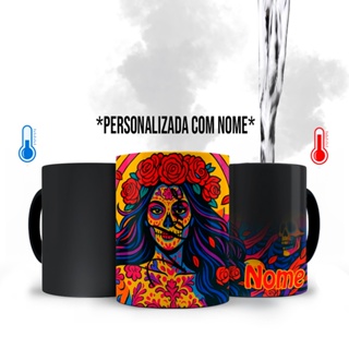 Caneca Mágica Catrina Caveira mexicana com Nome Personalizado