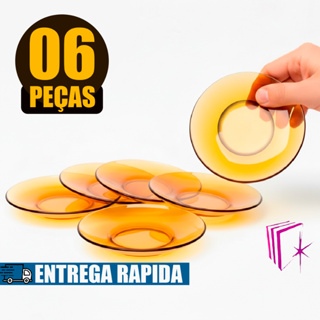 Conjunto Jogo de Pires Liso 06 Peças Cor Ambar Vidro Alta Resistencia Trandicional
