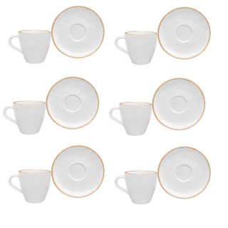 Jogo Xícaras De Chá Café Com Pires Kit 6 Peças 200ml Rustico Borda Marrom Porcelana Tramontina