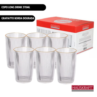 Jogo c/6 Unid Copo Long Drink 370ml Filete Dourado Hauskraft