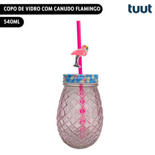Copo de Vidro com Canudo Flamingo 540ml Tuut