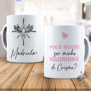 Caneca Madrinha e Padrinho de Crisma - Consagração - Batismo - Porcelana Personalizada 325 ML