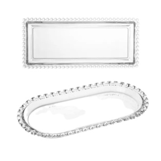 kit 1 bandeja retangular com borda de bolinha 24x12 cm 1 travessa oval borda de bolinha 24x12 cm material (acrílico)