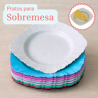 Kit 10 Pratos SOBREMESA Quadrados Plástico festas aniversários aperitivos Confraternização Natal bar