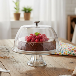 Boleira de Vidro com Pé e Tampa Opaline M White para Bolos e Sobremesas - Ruvolo