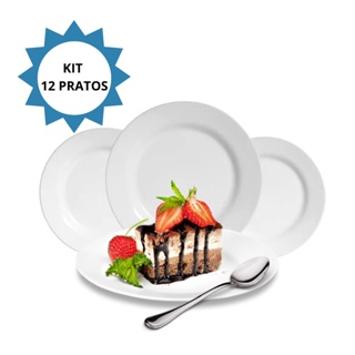 Kit Jogo C/ 12 Prato Branco Melamina Plástico Sobremesa Doce
