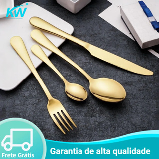 Jogo de Talheres 18/24/36/48 Peças Aço Inox Facas, Garfos de Mesa, Colheres, Colheres de Sobremesa