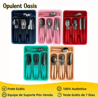 Jogo De Talheres Inox Com 24 Peças + Suporte Gaveteiro