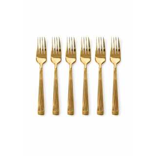 Jogo De Garfo 6 Peças Inox Dourado - Sobremesas, Doces, Bolos.