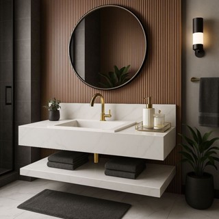 Bancada em Porcelanato para Banheiro Completa Alto Padrão 100cm Com Cuba Esculpida Branco em Oferta na Shopee Shopee