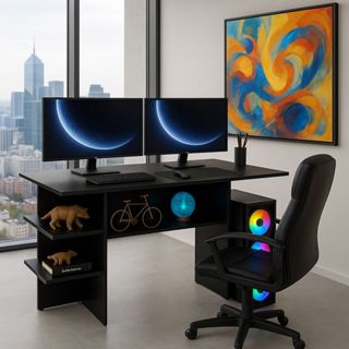 QUEIMA DE ESTOQUE - Mesa Gamer Escrivaninha  Multiuso p/ Notebook e Quarto - Cor Preto em Oferta na Shopee Shopee