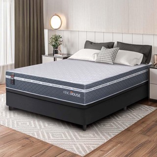 Conjunto Box Baú Preto Cairo Cinza Molas Ensacadas Casal 138x188x71 - King House em Oferta na Shopee Shopee