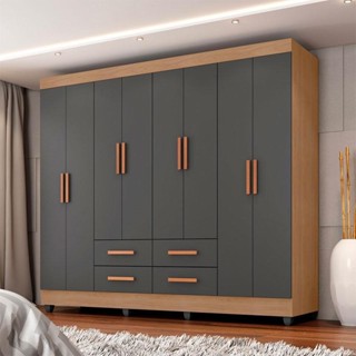 Guarda Roupa Casal Ambiente Porto 8 Portas Nature Cinza – Móveis Leão