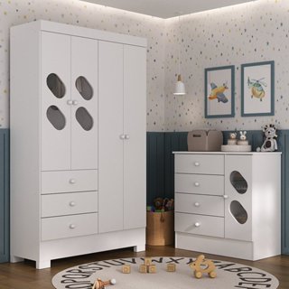 Quarto Infantil com Guarda Roupa e Cômoda Stella Branco