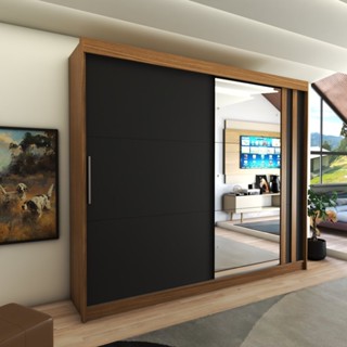 Guarda-Roupa Casal Castle Rock 100% Mdf 2 Portas 4 Gavetas com Espelho Freijo/Nero - Panorama Móveis