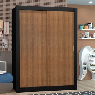 Guarda-Roupa Solteiro Madesa Denver 2 Portas de Correr - Preto/Rustic