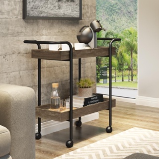 Carrinho Sala de Estar Bar Madeirado Tubos Pretos Carraro