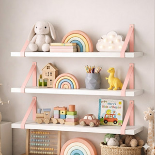 Prateleira Suspensa Para Quarto Infantil 60x15 Alça de Couro