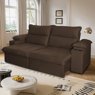 Sofá Retrátil Tesla 2,80m USB e Porta Copo Suede Marrom