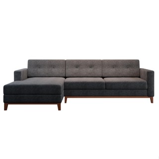 Sofá 3 Lugares Living com Chaise Esquerdo Pés e Base em Madeira Linho Cotton Grafite