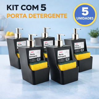 Kit Porta Detergente + Porta Esponja Dosador Bico 400ml Preto Xplast em Oferta na Shopee Shopee
