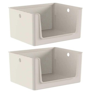 2x Cesto Caixa 16L Multiuso OU Flow Bege c/ Abertura Frontal em Oferta na Shopee Shopee