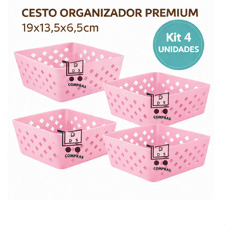 Kit 4 Cesto Organizador Multiuso Premium Rosa 19x13,5x6,5cm Armario Gaveta Geladeira Banheiro Cozinha Lavandeira em Oferta na Shopee Shopee