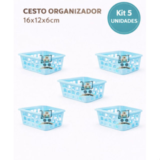 Kit 5 Cesto Organizador Multiuso Pequeno Azul 16x12x6cm Armario Gaveta Geladeira Banheiro Cozinha Lavandeira em Oferta na Shopee Shopee