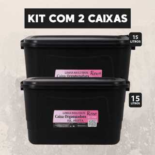 Kit Com 2 Caixas Plasticas Organizadoras 15 Litros Para Roupas Brinquedos Produtos Com Tampa Cor Preta Versatil Multiuso em Oferta na Shopee Shopee