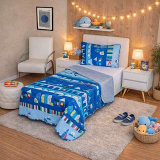 Colcha Cobre leito Solteiro Infantil Dupla Face 2 Peças Estampado com Porta Travesseiro