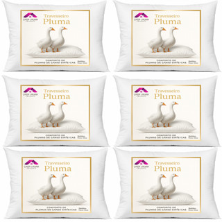 Kit 6 Travesseiros Pluma de Ganso Descanso Antiácaros 70x50cm Sintético