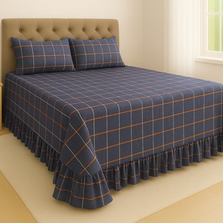 Jogo de Colcha Cobre Leito Tecido Linhão Para Cama Casal Box Padrão c/ Franja e Fronhas Algodão