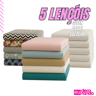 Kit 5 Lençol Superior Sortidos Solteiro Casal e Queen 400 Fios Avulso Conjunto Varias Cores Liso e Estampado