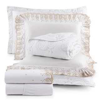 Kit Completo 7 Peças 100% Algodão Queen e King Bordado Mistral em Oferta na Shopee Shopee