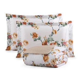 Kit Edredom Queen 200 Fios Dupla Face 3 peças com Porta Travesseiros Estampado Jardim Outono Aura em Oferta na Shopee Shopee