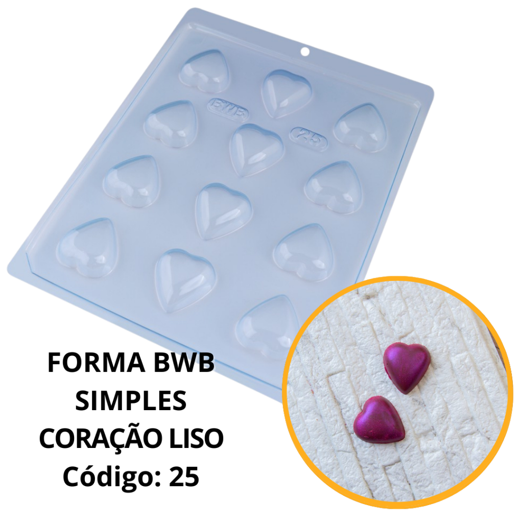 1~10 FORMA SIMPLES CORAÇÃO LISO P 25 - (H3) EM ACETATO BWB PARA BOMBOM, DOCES DE CHOCOLATE E CONFEITARIA.