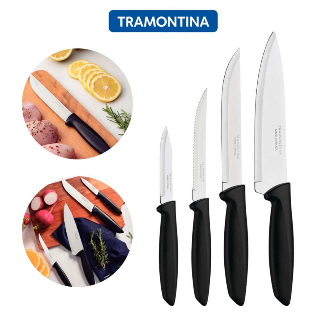 Jogo De Facas Plenus Preto Tramontina 4 Peças Lamina Em Inox