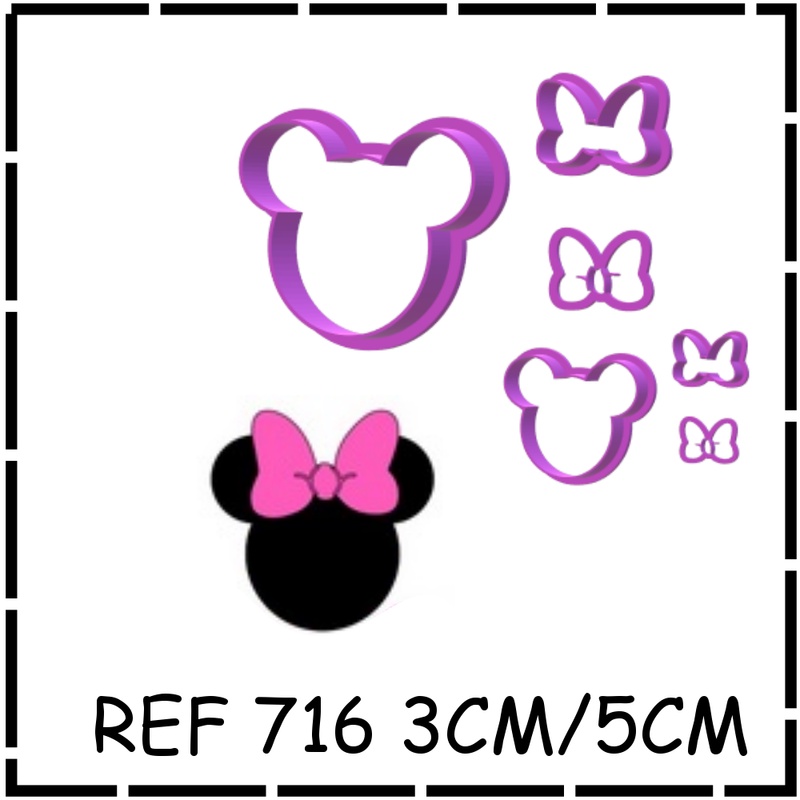 CORTADOR Kit Minnie Cabeça e Lacinho 5cm / 3cm MOLDULAR PASTA AMERICANA BISCUIT PLA