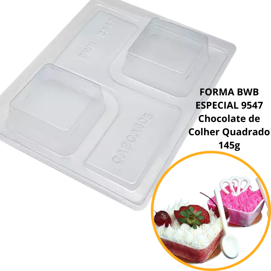 1~4 forma silicone bwb p/chocolate (3partes) cod 9547 - Chocolate de Colher Quadrado 145g (CHOCO)