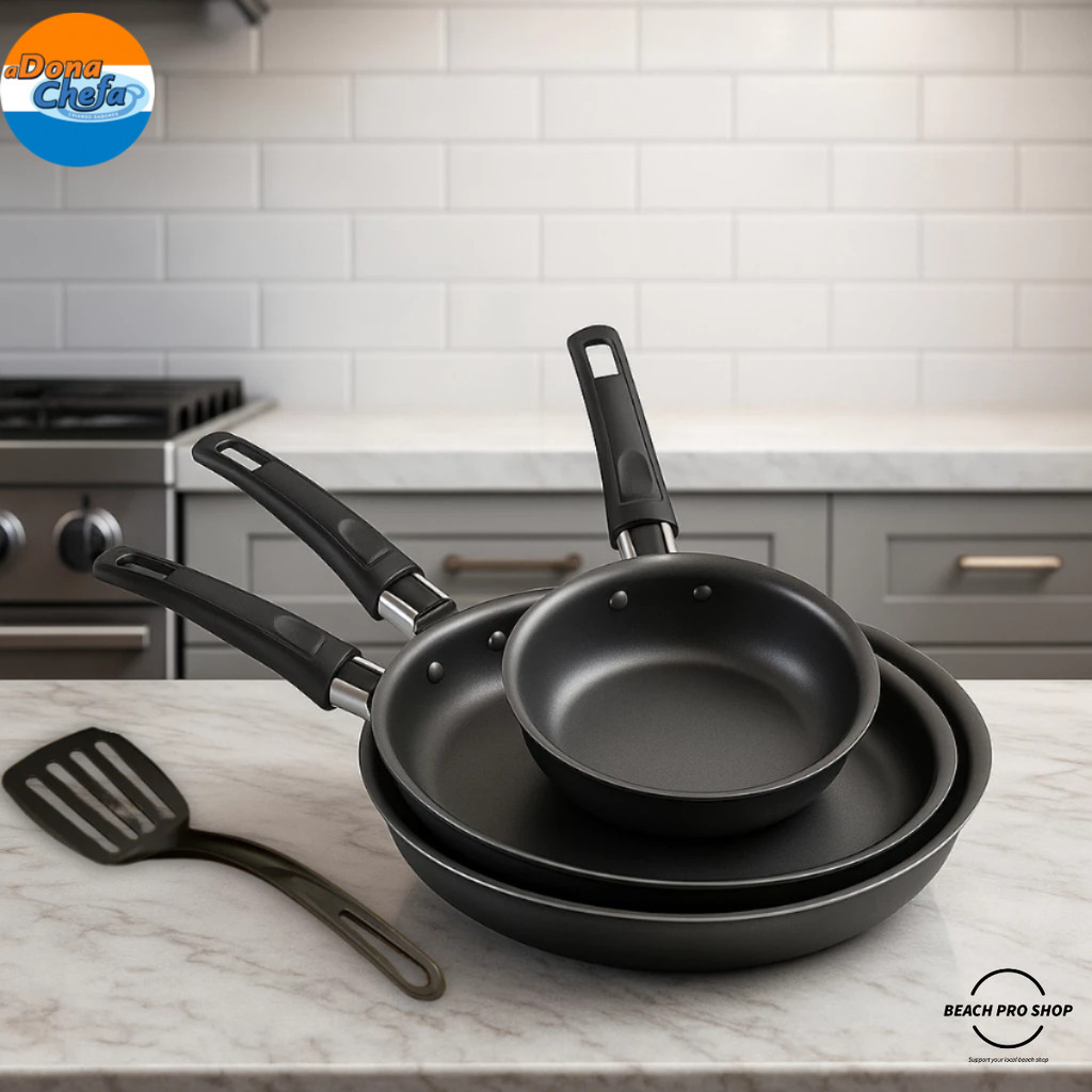 Kit Jogo de Frigideiras Lady 3 Peças Tamanho 18, 20 e 24 cm AntiaderenteTeflon Com Espátula